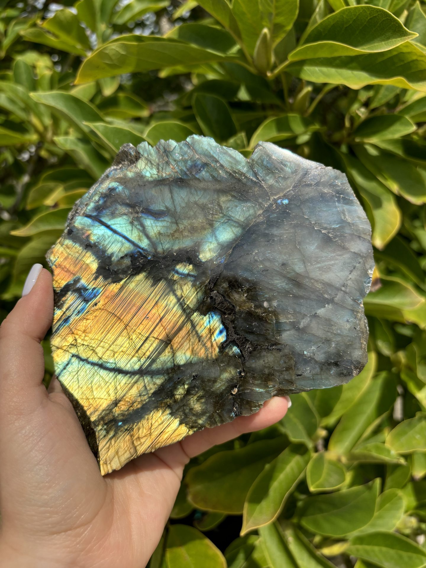 Plaque de Labradorite numérotée et d’excellente qualité.