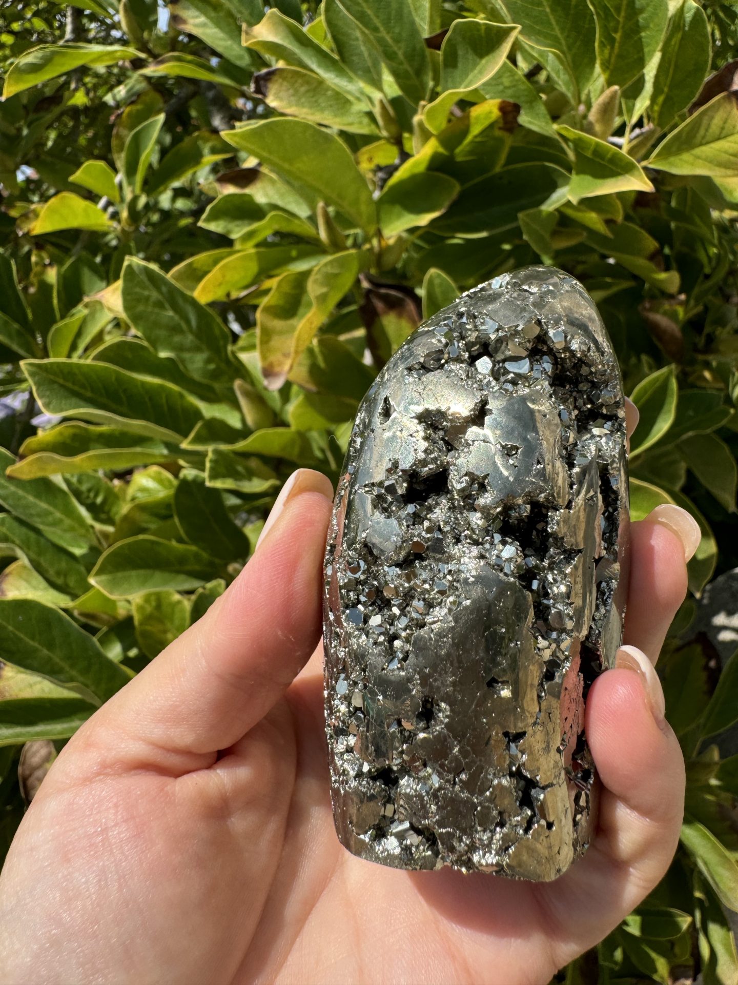 La Pyrite Cristallisée comporte naturellement des imperfections (trous, cavités, fissures), ce qui contribue à son charme unique et à son authenticité. Ainsi, nous ne pouvons garantir de retrouver une pièce similaire. Si vous avez un coup de cœur, n’attendez pas !