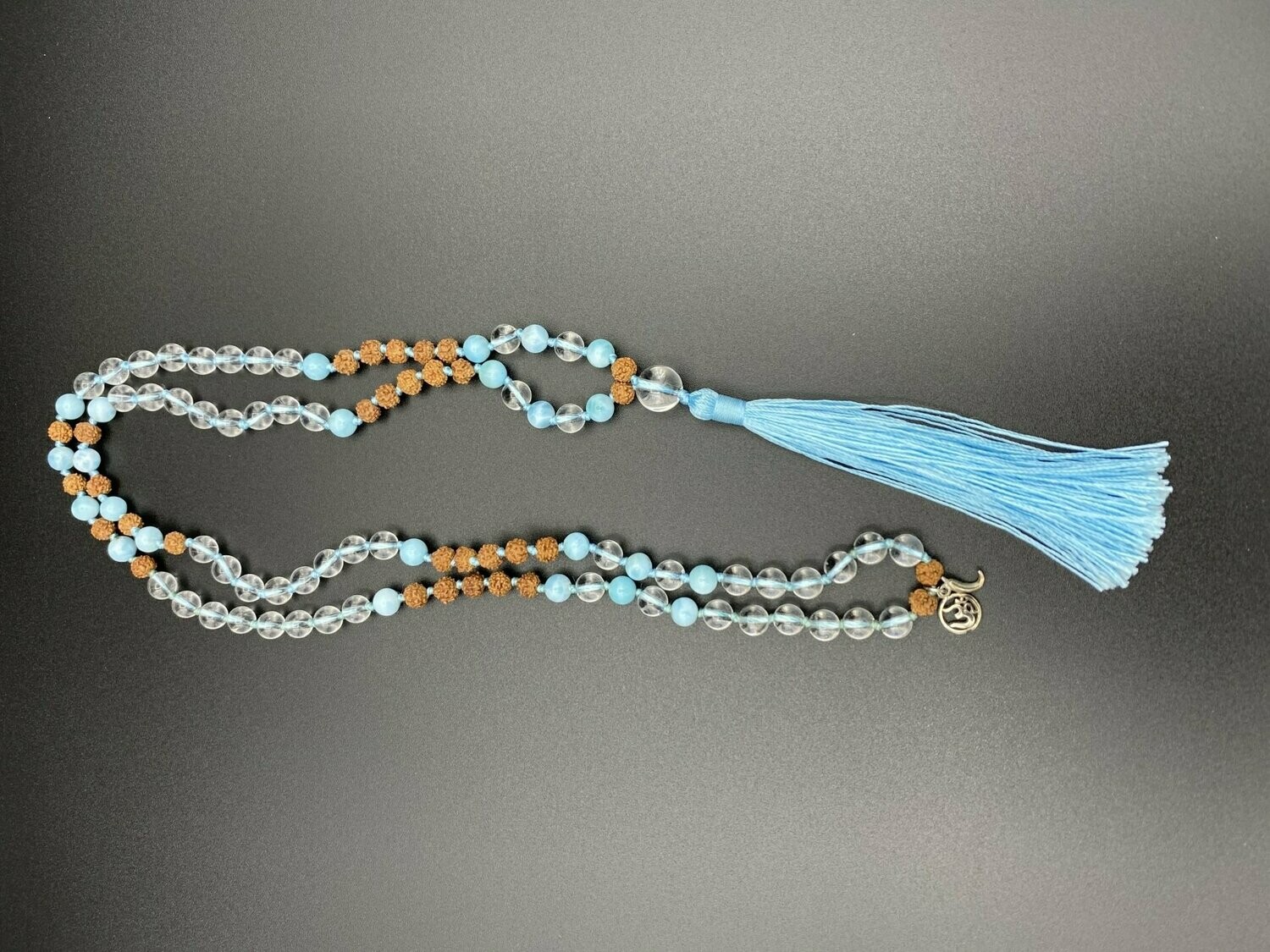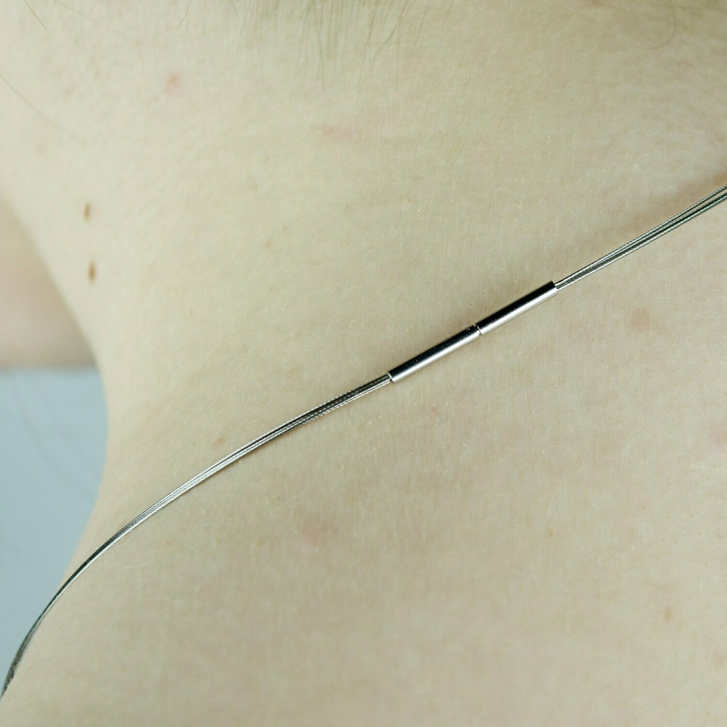 Pendentif en pierre naturelle monté sur un cordon métallique.