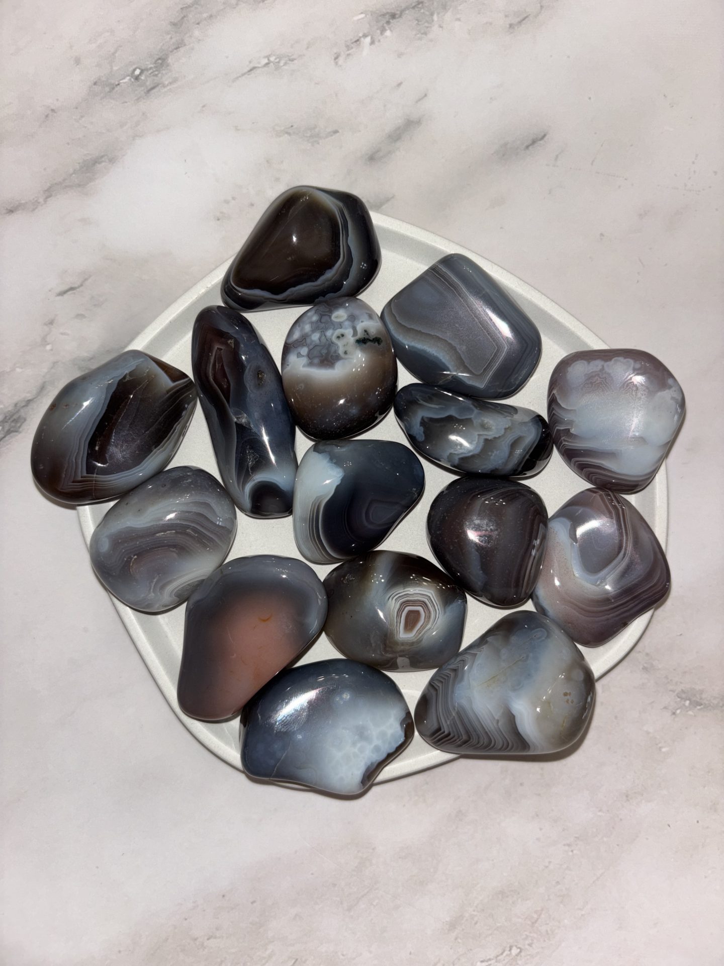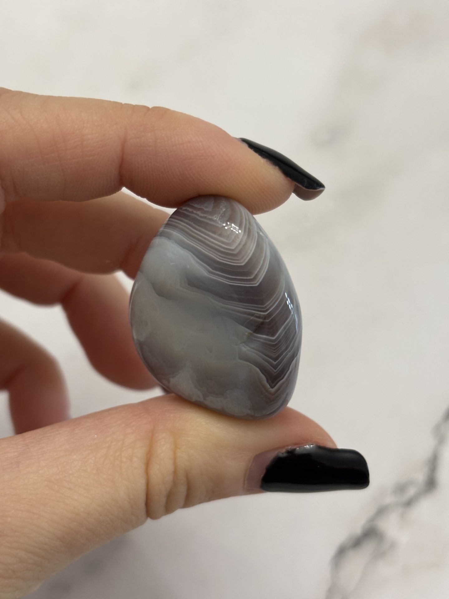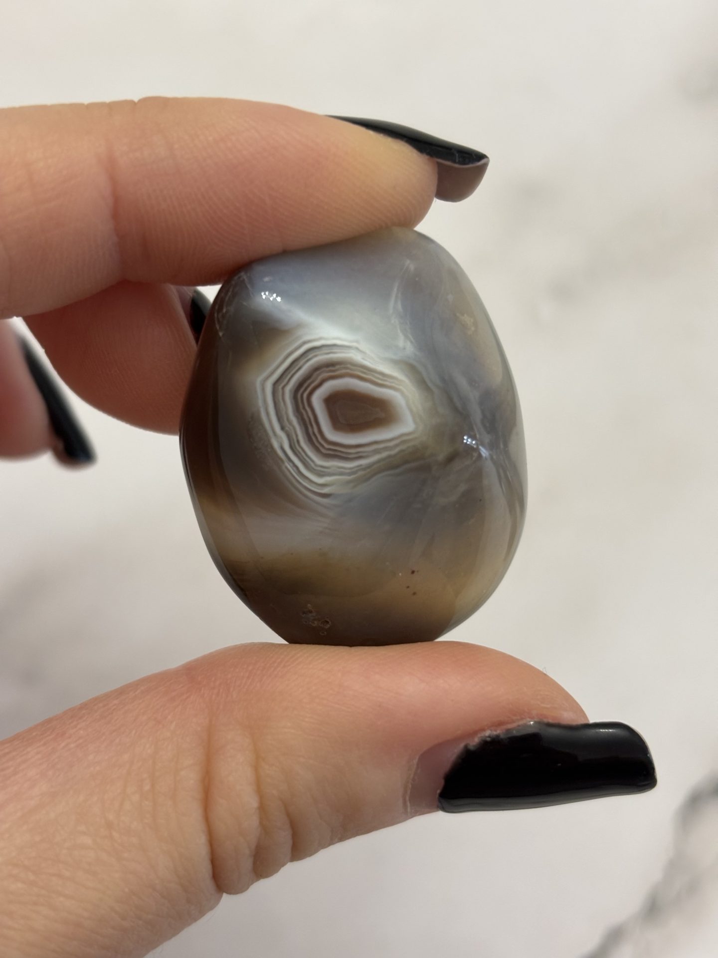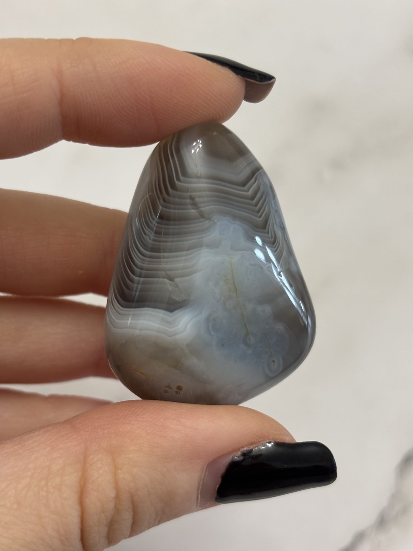 Pierre d’équilibre et de douceur, l’Agate du Botswana invite à la paix intérieure, à la confiance et à la stabilité émotionnelle.