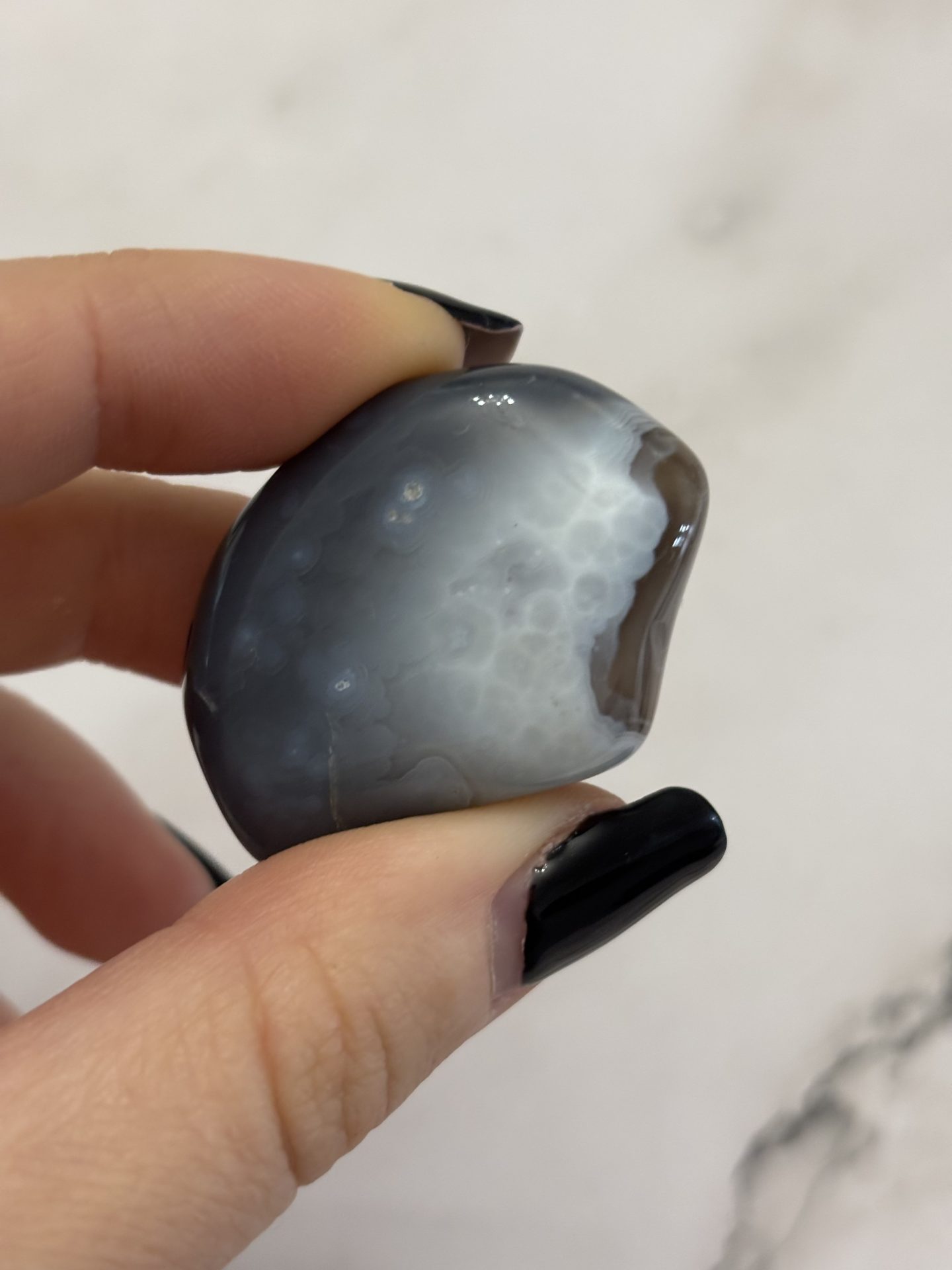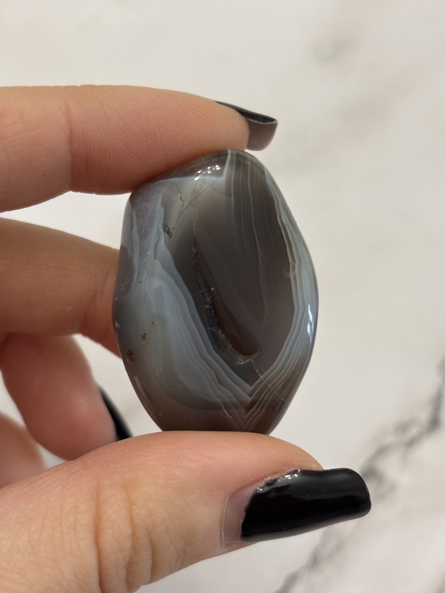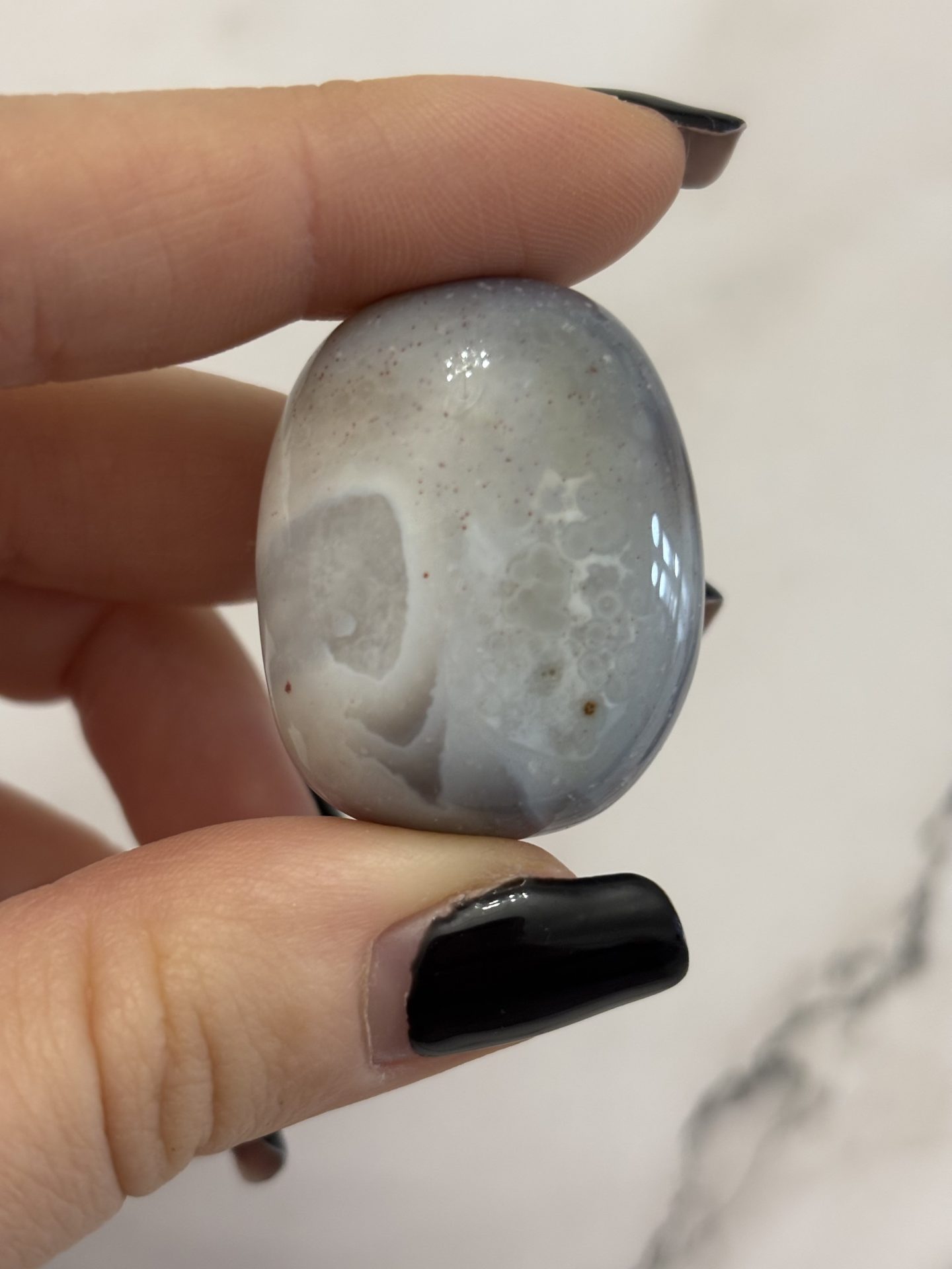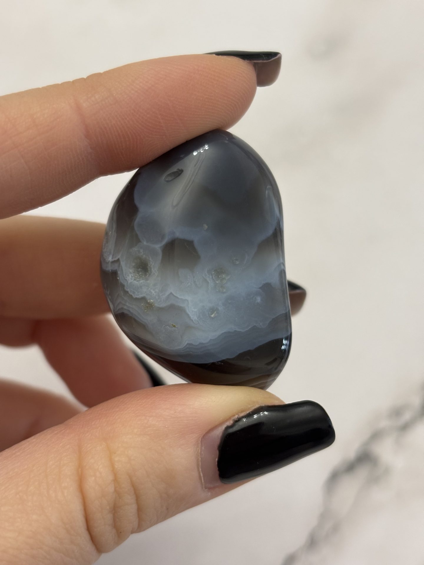 Pierre d’équilibre et de douceur, l’Agate du Botswana invite à la paix intérieure, à la confiance et à la stabilité émotionnelle.