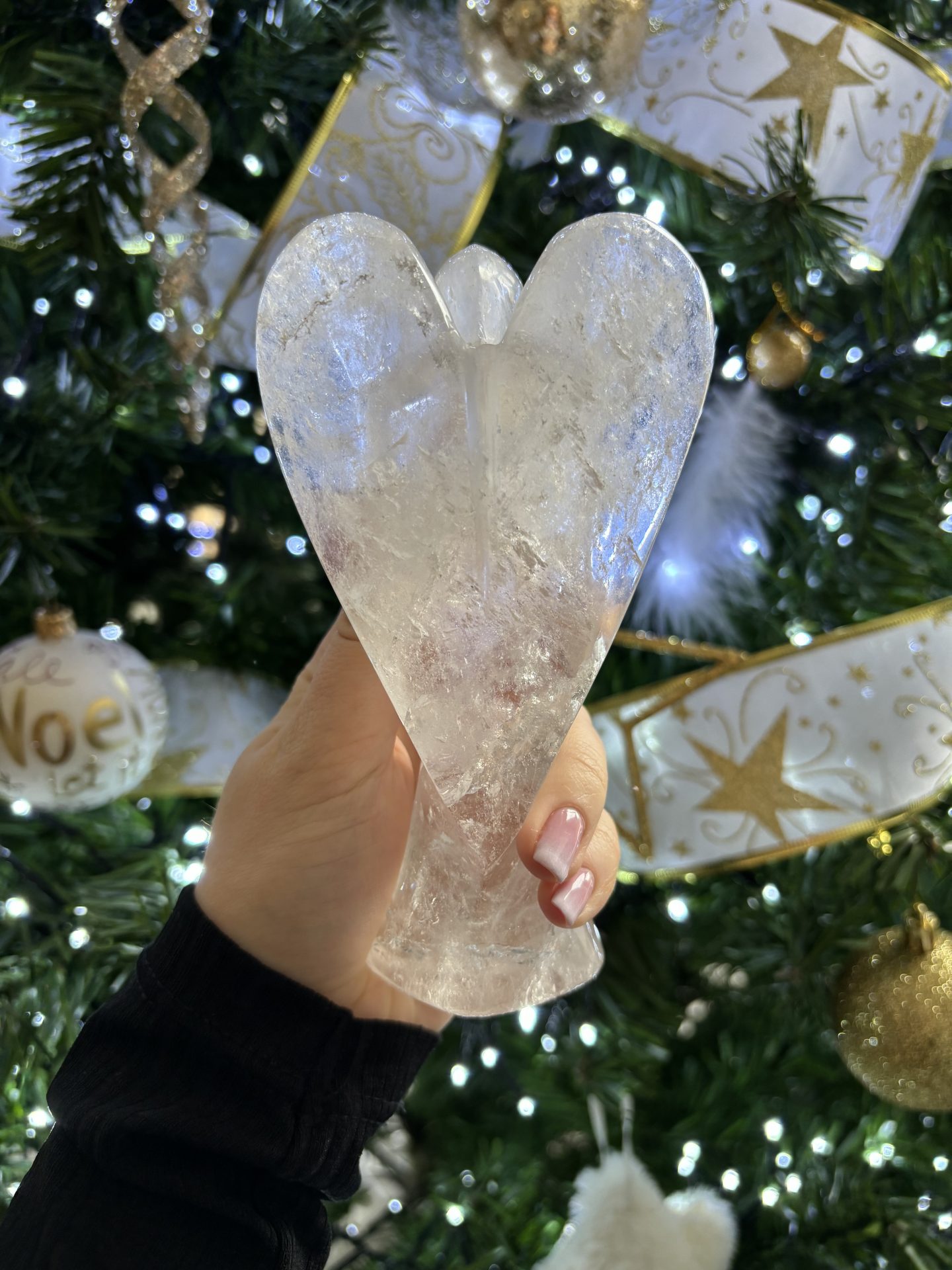L’ange en Cristal de Roche est une pièce d’une pure beauté et d’une énergie bienfaisante. Ce magnifique objet, taillé à la main avec précision, est conçu pour purifier l’esprit et équilibrer les énergies environnantes.