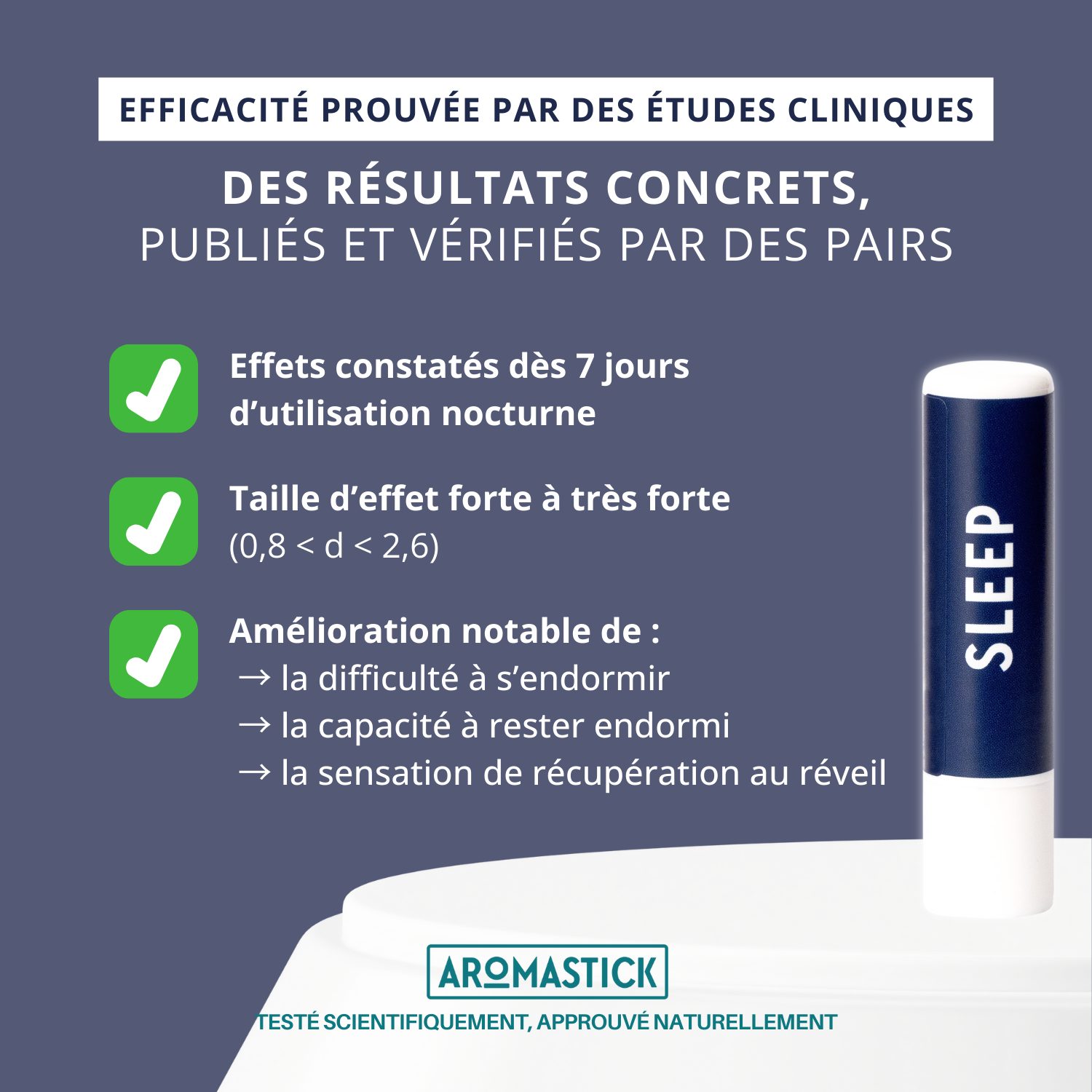 Le sommeil est essentiel pour le bien-être physique et mental. Un manque de sommeil peut entraîner des symptômes tels que l’irritabilité, la diminution des performances cognitives et une baisse de l’humeur. Une bonne nuit de sommeil est également cruciale pour le système immunitaire et pour maintenir un équilibre émotionnel. Aromastick SLEEP agit en soutien à un cycle de sommeil naturel, sans les effets secondaires des somnifères ou autres solutions chimiques.