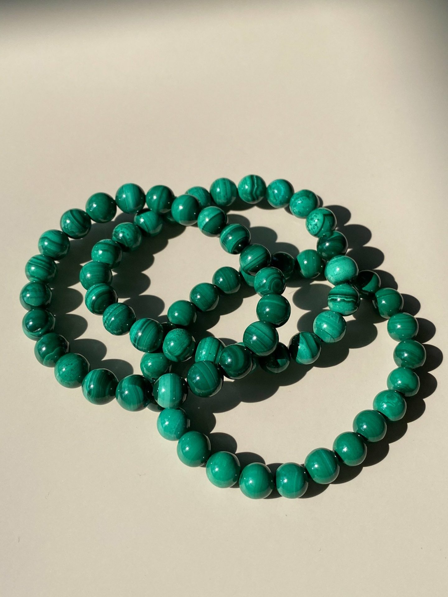 Le bracelet sphères Malachite claire est composé de perles en Malachite de 8mm.