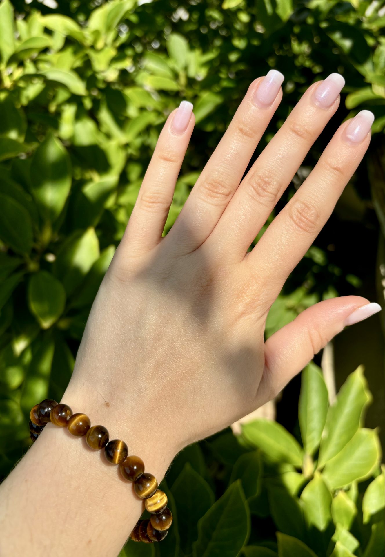Le bracelet facettes Oeil de Tigre est composé de sphères en Oeil de Tigre de 8mm, de qualité AA.