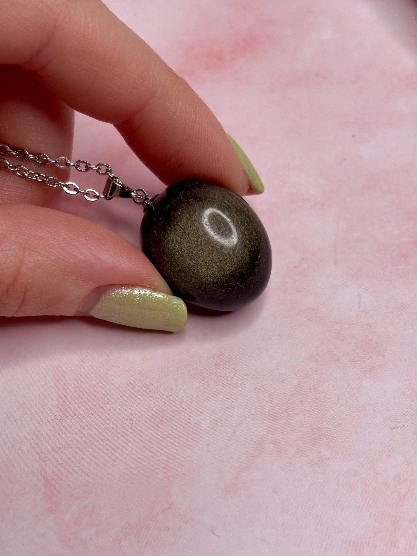 Puissante, protectrice et intensément lumineuse, notre obsidienne dorée qualité premium révèle dans ce collier toute la profondeur de sa vibration. Chaque pierre est sélectionnée pour ses reflets dorés naturels — de véritables éclats solaires emprisonnés dans une pierre volcanique ancestrale.
