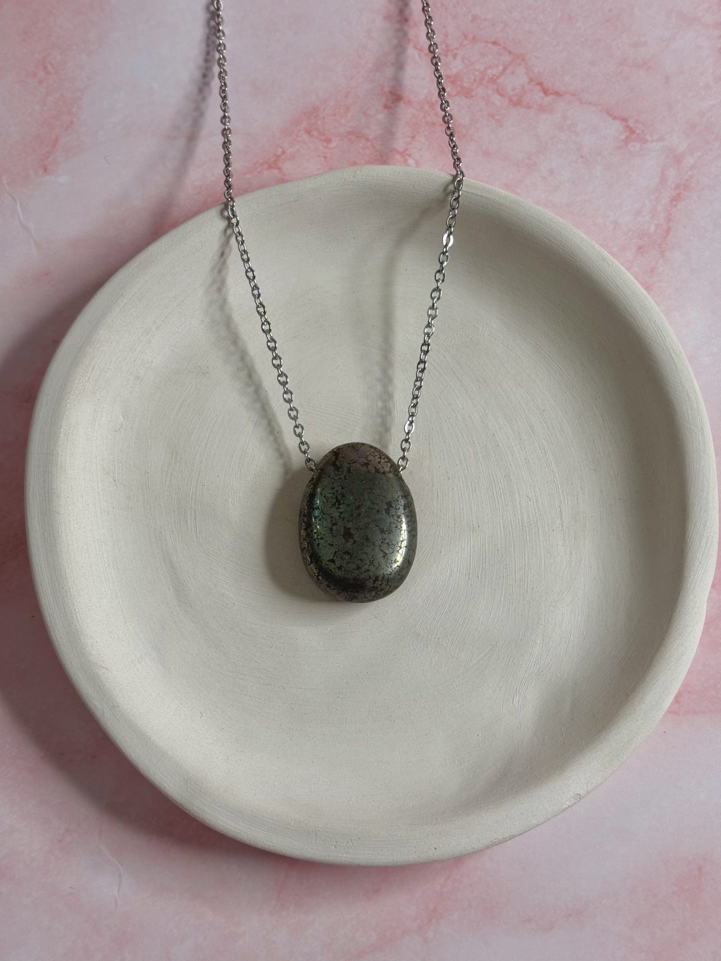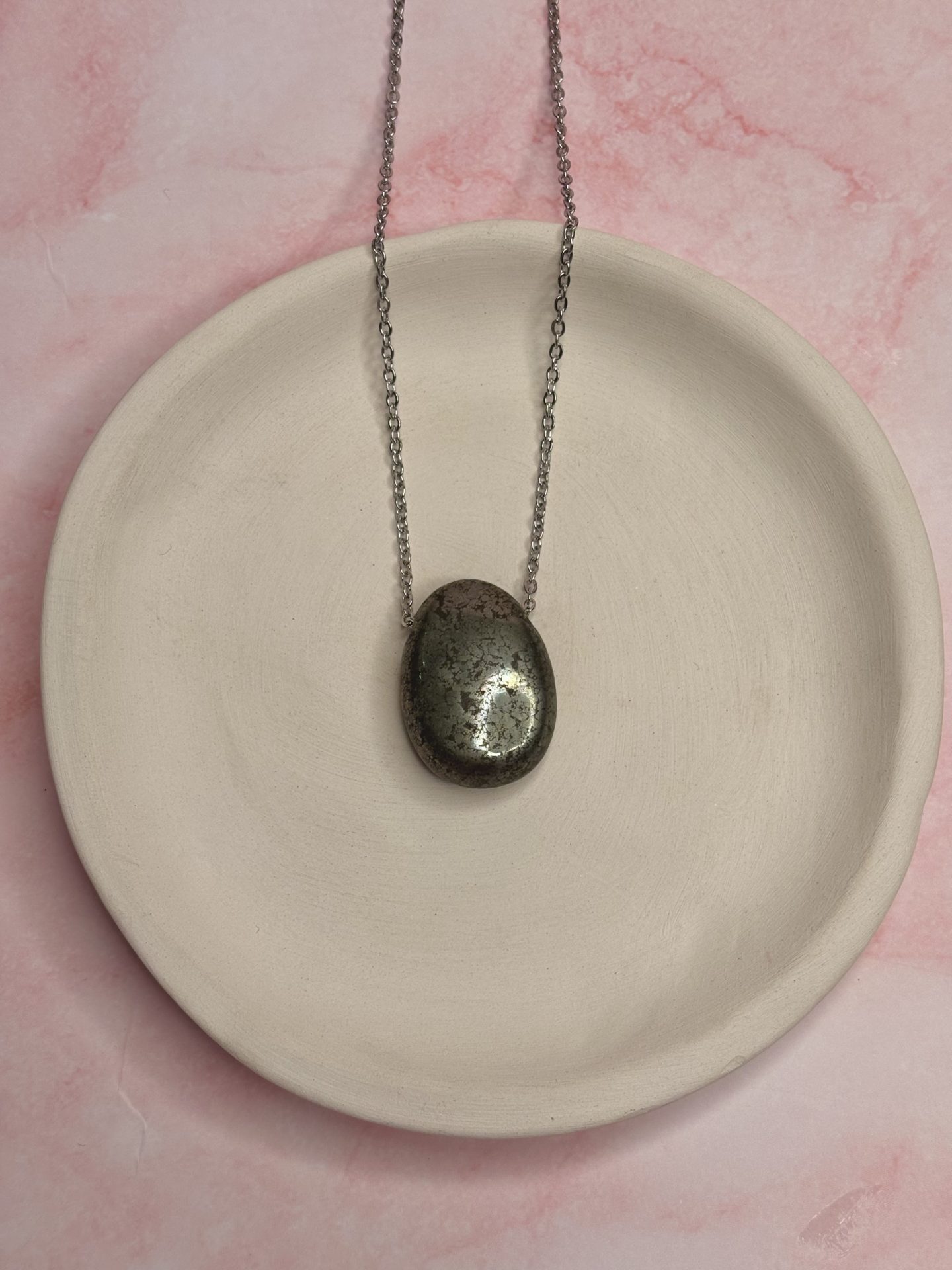 En lithothérapie, la pyrite est une pierre d’ancrage, de force et de protection très puissante. Portée en pendentif, elle agit comme un véritable bouclier énergétique.