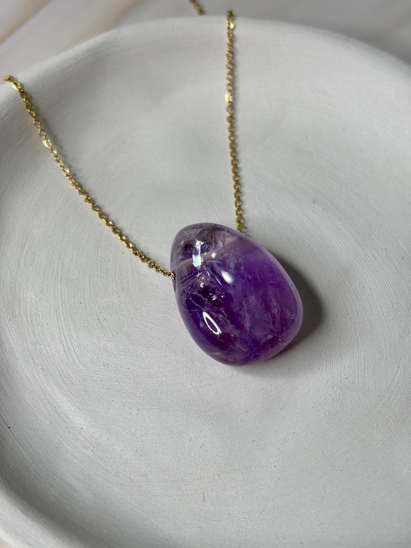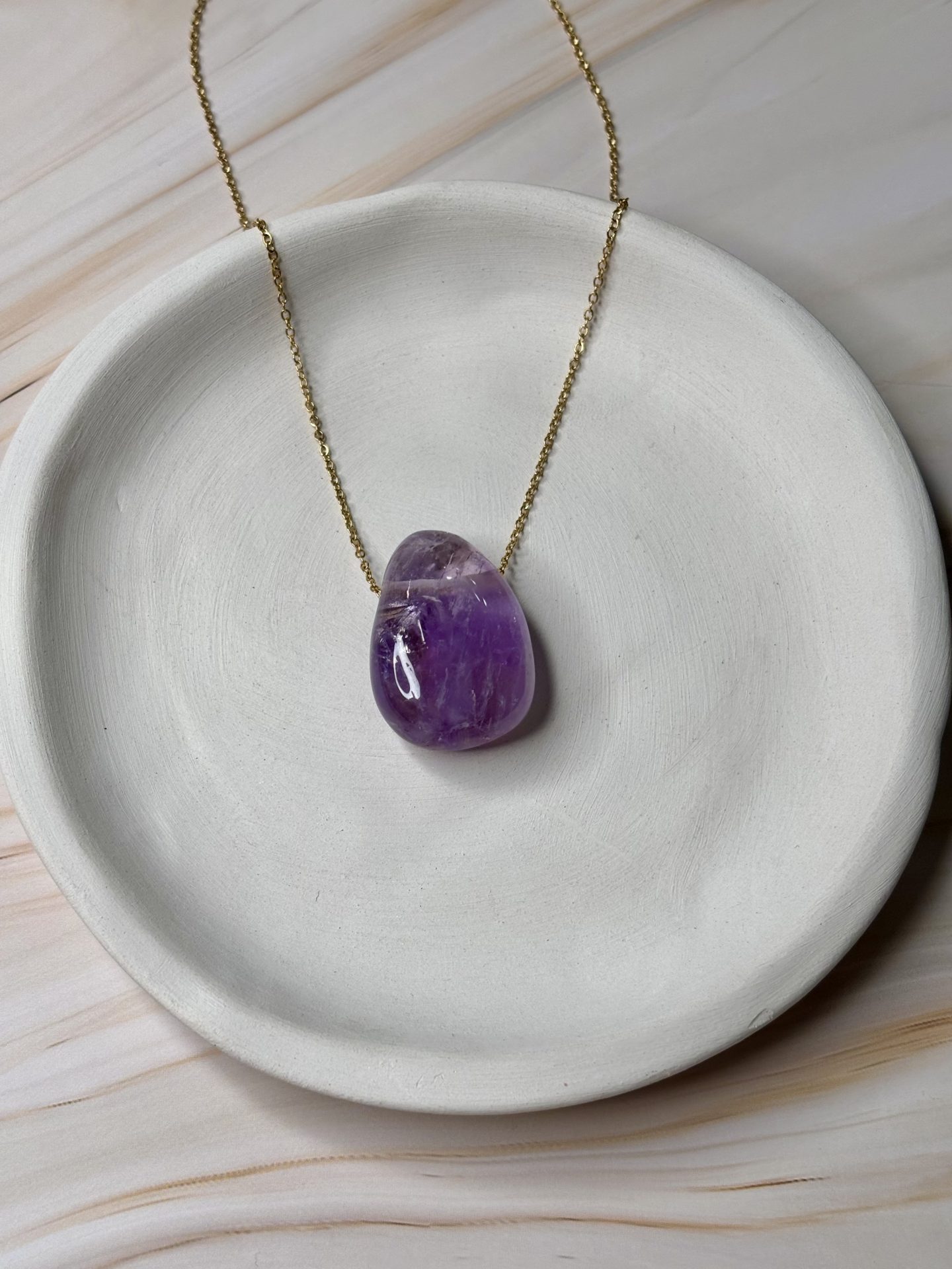 Symbole de sagesse, de paix intérieure et de protection spirituelle, notre collier en améthyste est une pièce intemporelle et vibrante, réalisée à la main dans notre atelier. Chaque pierre est sélectionnée pour sa profondeur de couleur, ses nuances violettes naturelles et la force de son énergie.