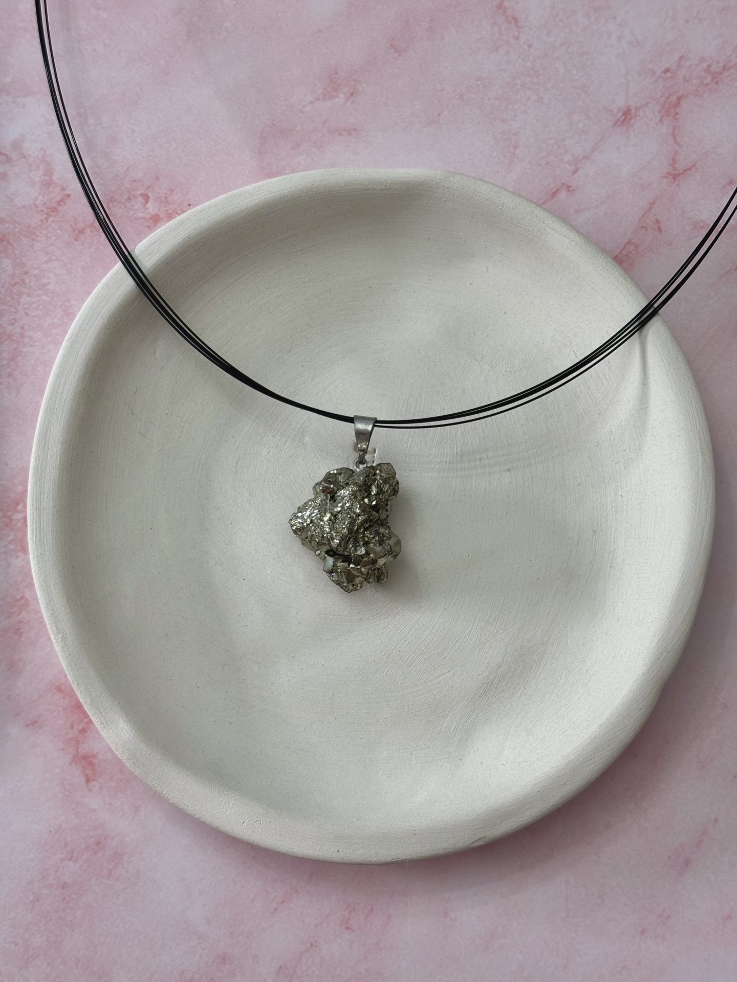 En lithothérapie, la pyrite est une pierre d’ancrage, de force et de protection très puissante. Portée en pendentif, elle agit comme un véritable bouclier énergétique.
