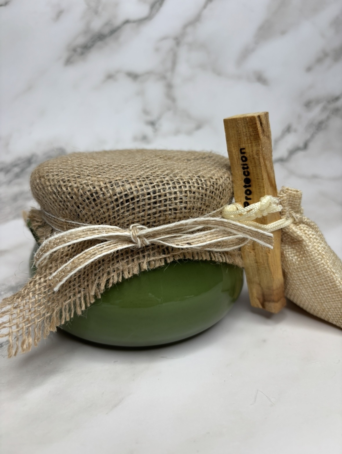 Notre rituel s’accompagne d’un bâton de Palo Santo gravé d’une intention et de quatre pochons de gros sel.