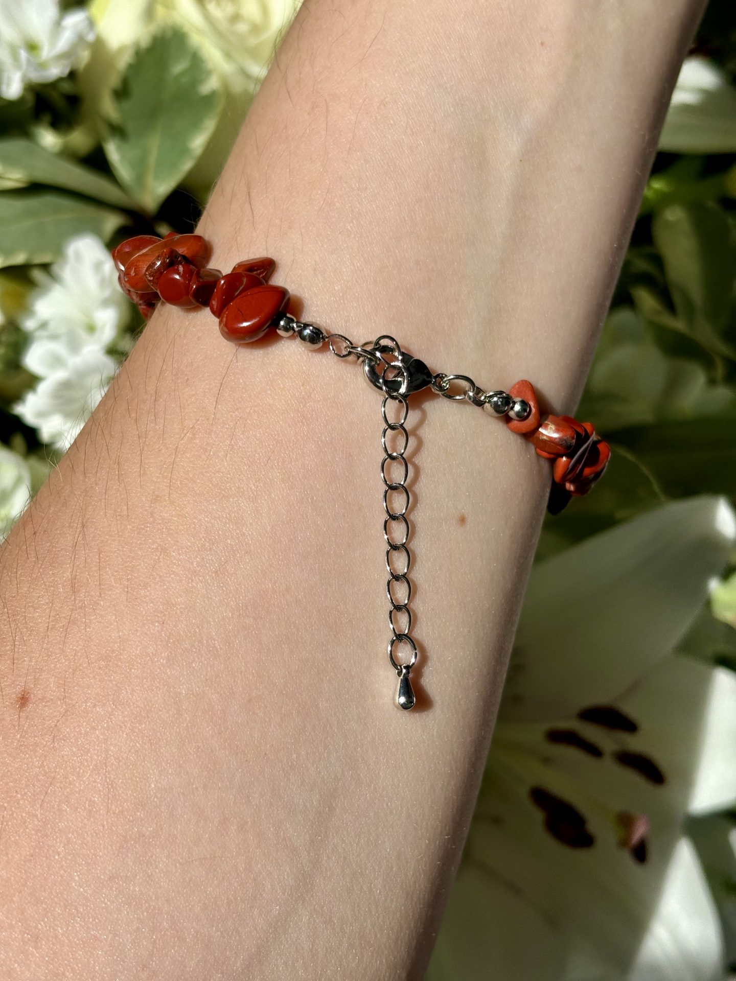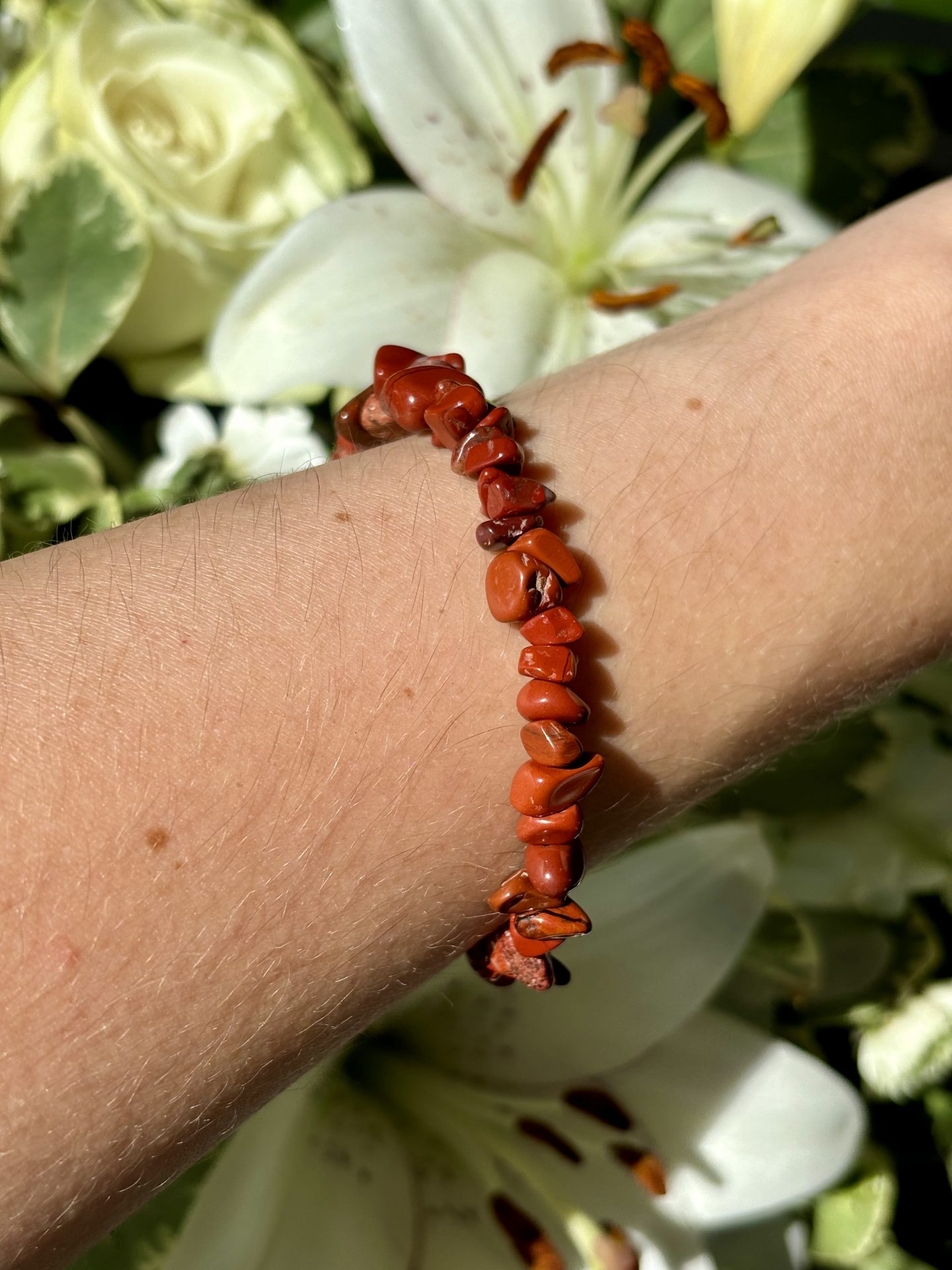 Découvrez la Parure « Volonté » en Jaspe Rouge, une pièce exceptionnelle de notre Collection Galets Uniques, où chaque bijou est fabriqué à partir de pierres naturelles véritables. Évoquant la force et la détermination, cette parure rend hommage à la beauté intense et énergique du Jaspe Rouge, réputé pour ses vertus dynamisantes.