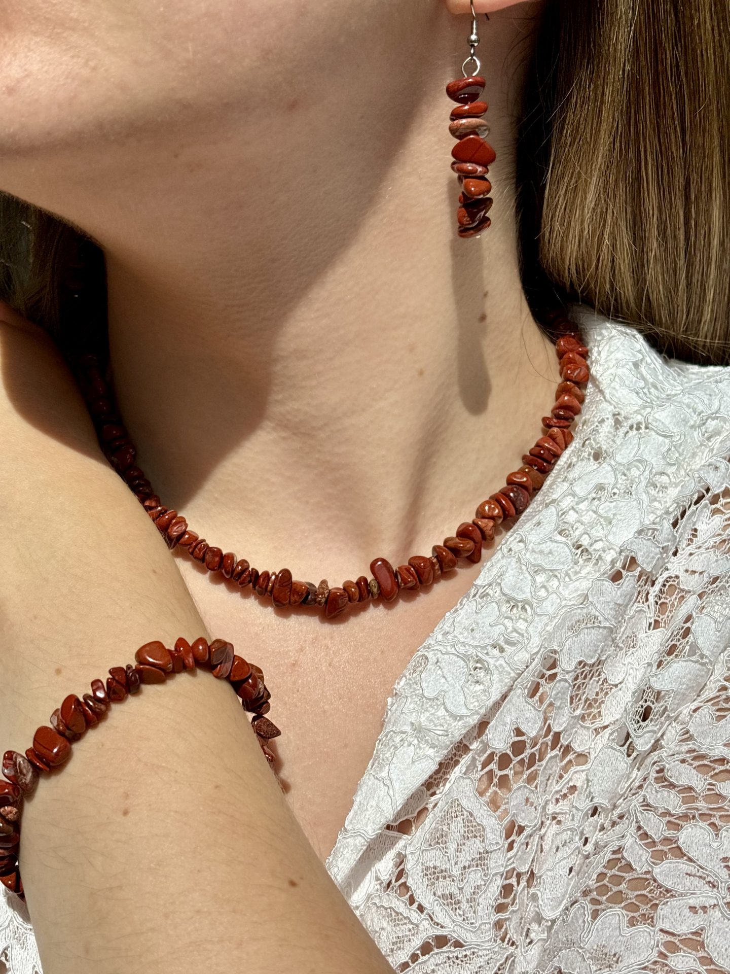 Parure Volonté en Jaspe Rouge – Collection Galets Uniques
