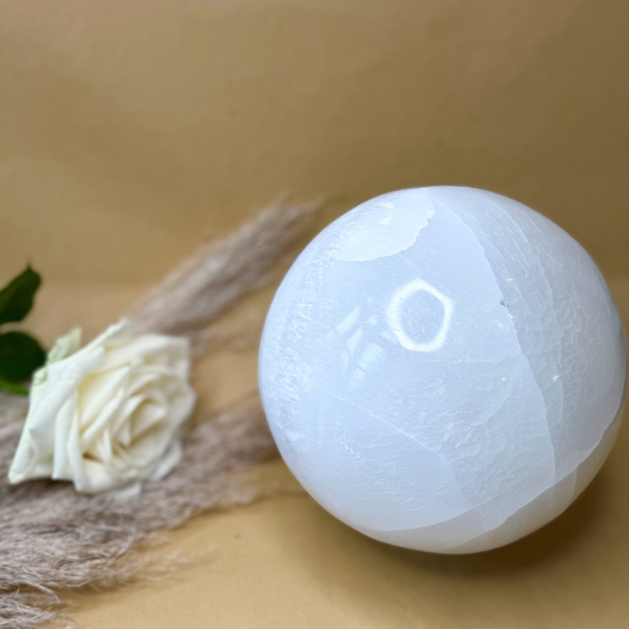 • À l’entrée : Placer une sphère de Sélénite près de l’entrée de votre maison aide à purifier les énergies dès l’arrivée et à maintenir un espace positif et accueillant.